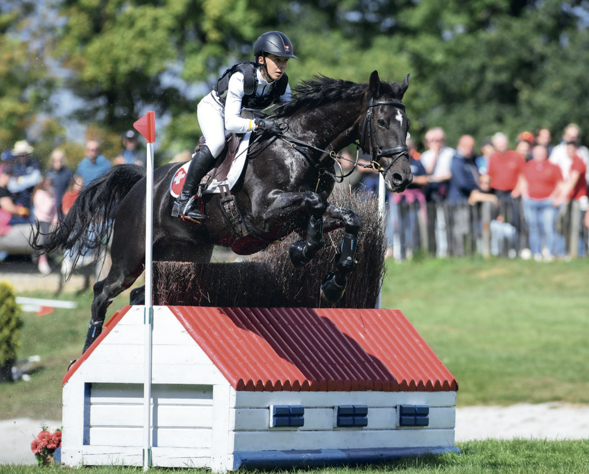 Nous avons roulé jusque là-bas avec mes parents. Sur place, Benoît Johner, Claudia Dietrich (cheffe d’équipe), Pierrette Glutz et la vétérinaire Antonia Müller nous ont rejoint ; ça faisait beaucoup de monde pour moi et j’ai eu peur de les décevoir. J’aurais pu faire mieux au dressage : c’était le même programme qu’à Avenches, où nous avions obtenu 65%, et là avec le stress, nous avons eu 59%. Le cross, je l’ai marché jusqu’à en avoir marre. On a fait un parcours sans faute, juste avec 5 pts de temps car on a soigné les abords. À ce moment-là, je suis remonté de 27 places ! J’ai massé le cheval, on a tout fait pour qu’il récupère au mieux et le lendemain au saut, le parcours était également sans faute. Je retire vraiment du positif de cette expérience.