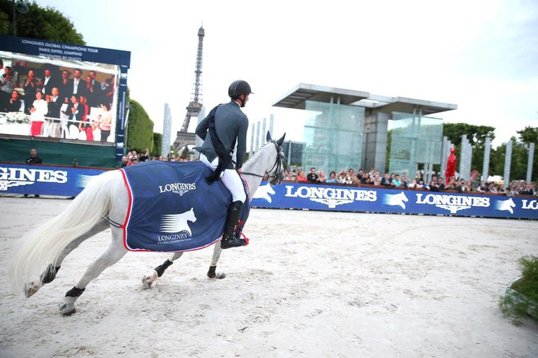 Kevin Saut remporte l'étape du Global Champions Tour au Paris Eiffel Jumping avec Silvana. Pius Schwizer bon 2e avec Toulago.