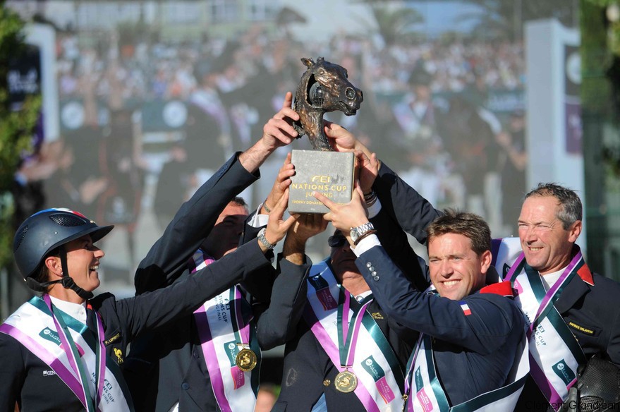 Même si les Suisses ne s'étaient pas qualifié pour cette finale, la victoire française a aussi été rendue possible grâce à un Suisse, le chef d’équipe Philippe Guerdat. Il a su motiver ses troupes et le sans-faute – le seul de l’équipe ! – sorti par Aymeric de Ponnat et son fabuleux Armitages Boy (PHOTO en haut) leur a donné des ailes. Equipe malheureuse à Herning, 4e, ils ont pris ici leur revanche et montré que l’an prochain, pour les Jeux Equestres Mondiaux à domicile, il faudra compter sur eux ! Les Français ont laissé le suspense jusqu’au bout, alors qu’ils auraient pu boucler l’affaire lors du tour de Pénélope Leprevost, 4e de son équipe à s’élancer. Un sans-faute de sa part et les Brésiliens n’auraient pas pu revenir au score. Mais c’était compter sans une faute de la Normande sur le premier obstacle, qui laissait le sort des Français entre les mains de « Doda ».
