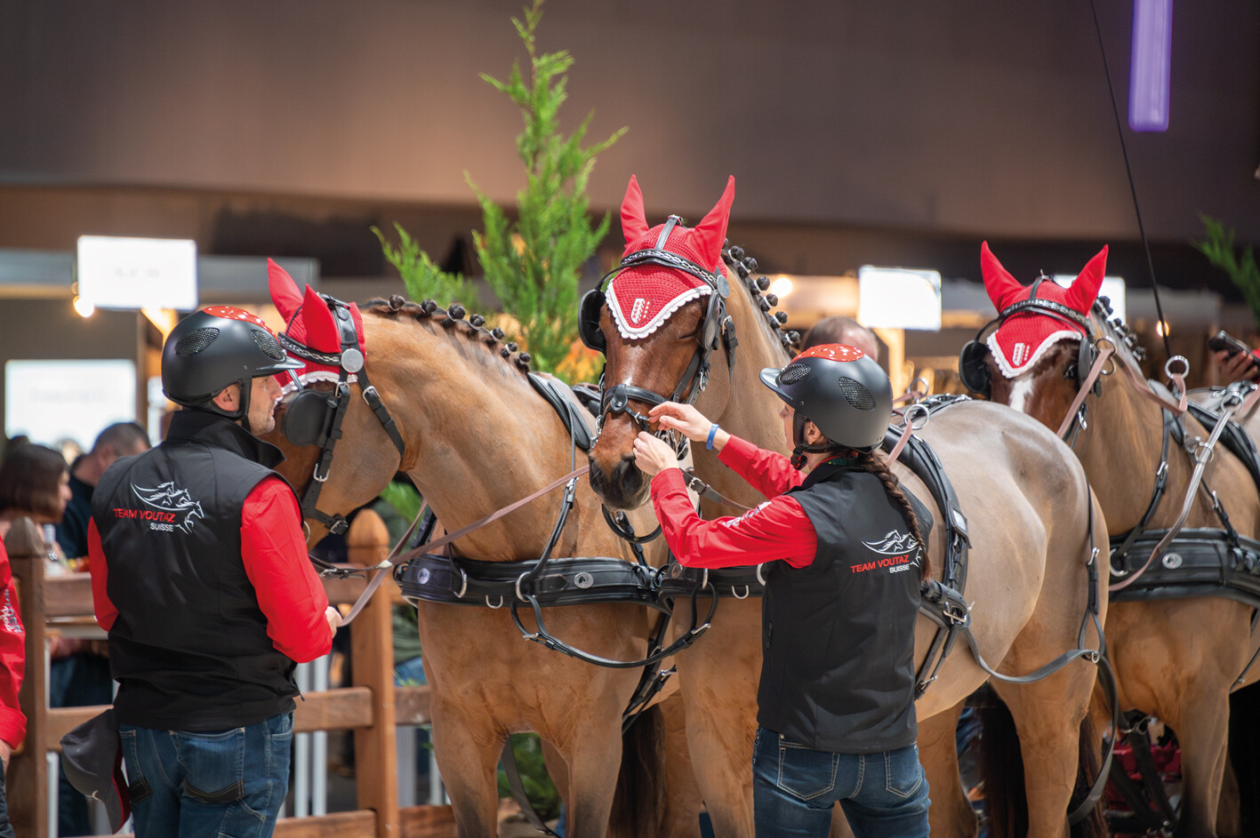 Jérôme Voutaz était une nouvelle fois au départ de l’étape de Coupe du monde d’attelage au CHI de Genève, les 13 et 14 décembre dernier. Là où, en saut d’obstacles, un seul cheval et un harnachement suffisent pour entrer en piste, l’attelage impose une toute autre logistique : quatre chevaux, une multitude de cuirs et une organisation millimétrée. Le meneur de Sembrancher l’annonce d’emblée : ce reportage en immersion dans la préparation de son attelage ne sera pas centré sur lui, mais sur ses grooms, maillons indispensables de sa réussite. Il suffit de franchir le seuil des écuries du concours pour comprendre pourquoi.