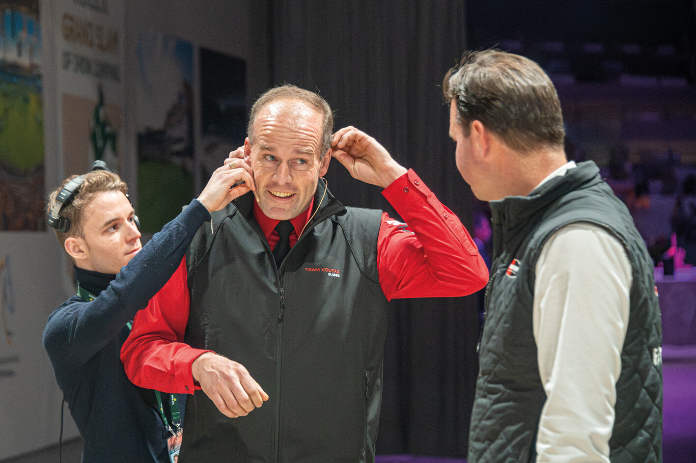 Le moment est venu, il est temps d’entrer en piste. Et là encore, le meneur n’est jamais seul. Pour franchir le rideau qui s’ouvre sur la grande piste de Palexpo, sous les applaudissements et les encouragements du public, toute l’équipe l’entoure jusqu’au dernier instant, savourant le résultat de deux heures de travail acharné pour que tout soit parfait à cet instant précis. Puis chacun prend place sur la tribune du Kiss & Cry, prêt à vivre le parcours à fleur de peau. Un parcours qui n’existerait pas sans eux, indispensables rouages de l’équipe.
