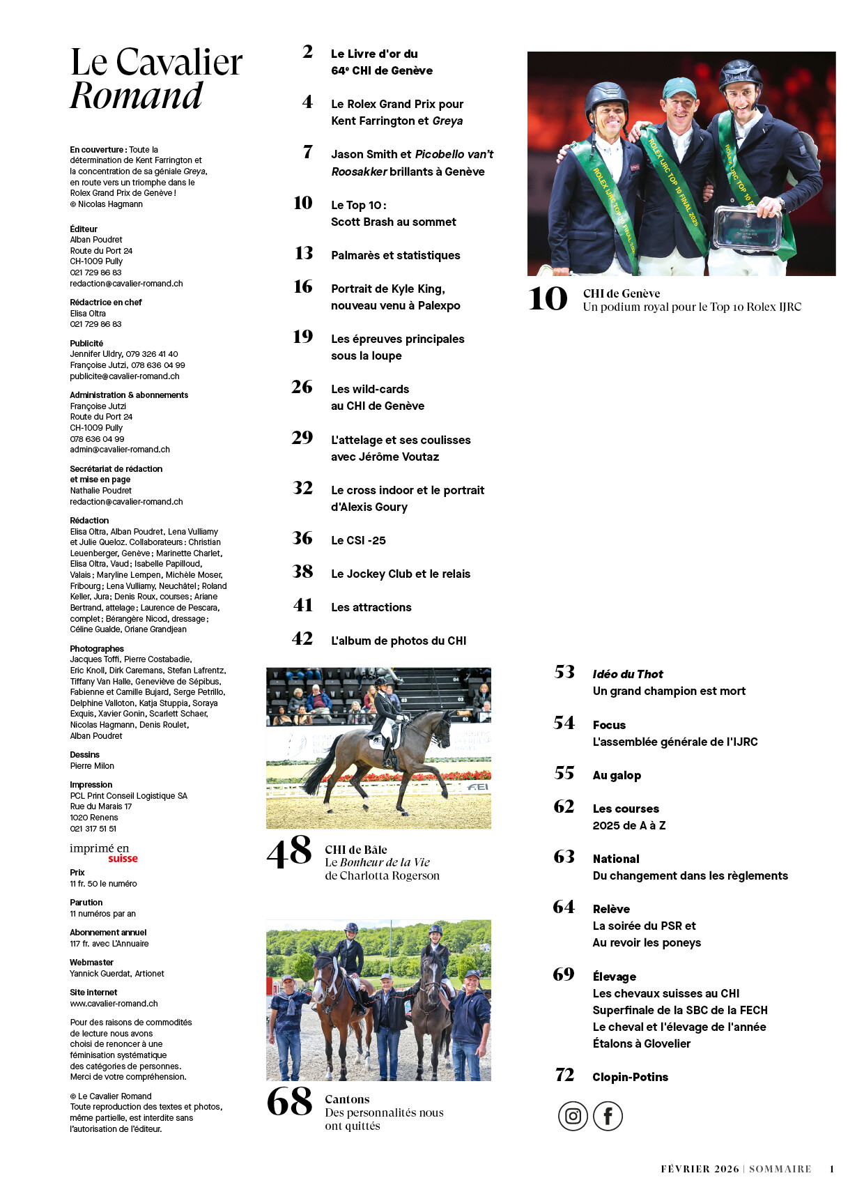 Le meilleur cheval et le meilleur éleveur de 2025. Le prix de la FECH et la Superfinale de la Swiss Breed Classic. La sélection des étalons à Glovelier Et aussi Focus et Au galop, tout sur le monde équestre international ; on vous explique tout sur les nouveaux règlements pour les concours hippiques ; des hommages dans les cantons et Clopin-Potins